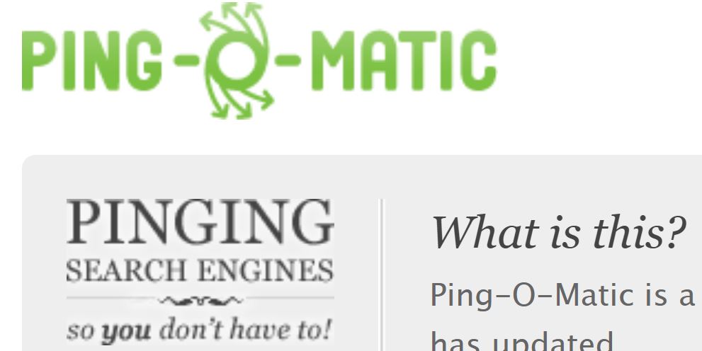 - Pingomatic will go and ping some other services on your behalf. Its short list includes Blo.gs, Feed Burner, Spinn3r, and Superfeedr.